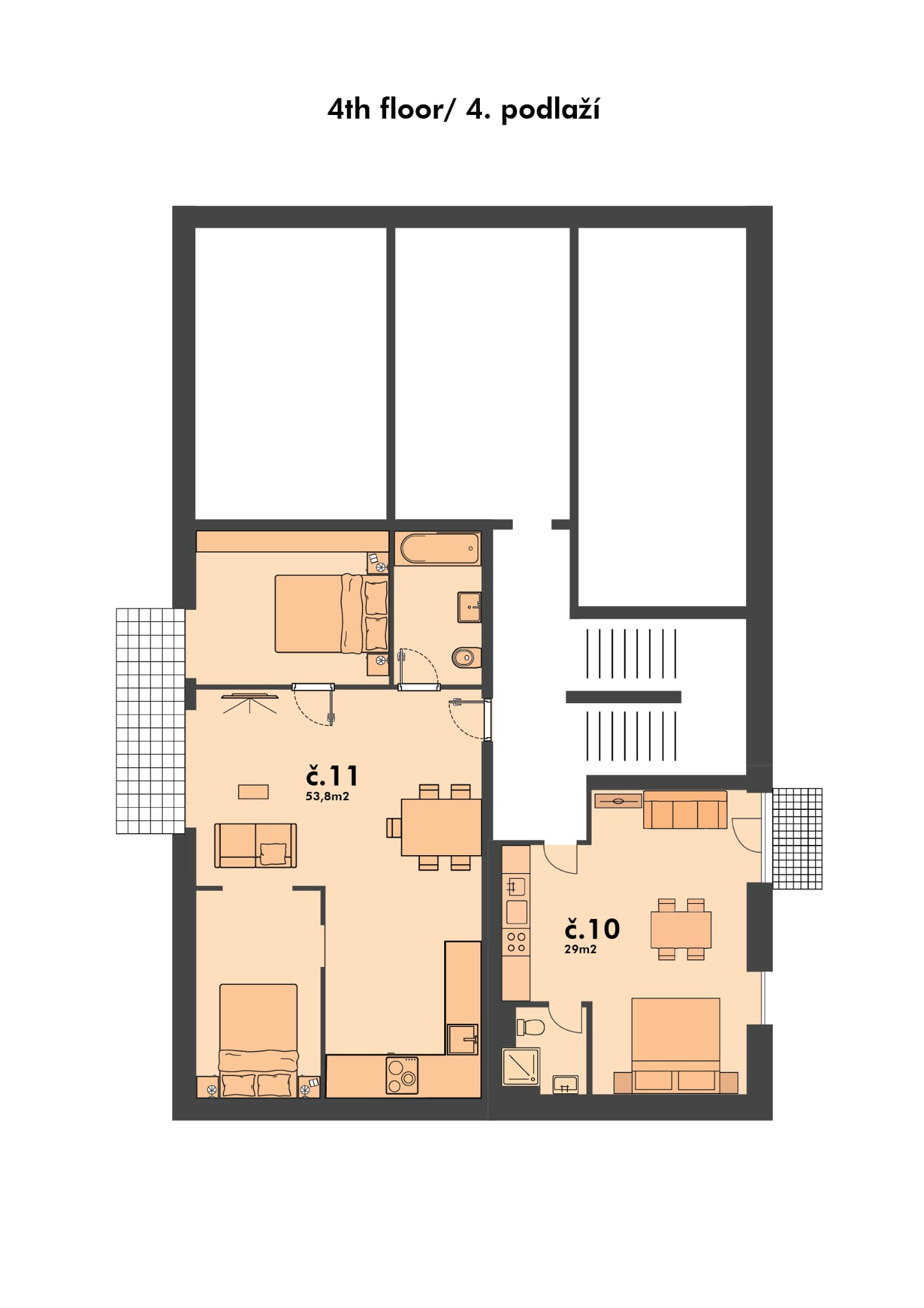 - 1x apartmán patrový 4+kk pro 10 osob 85 m2